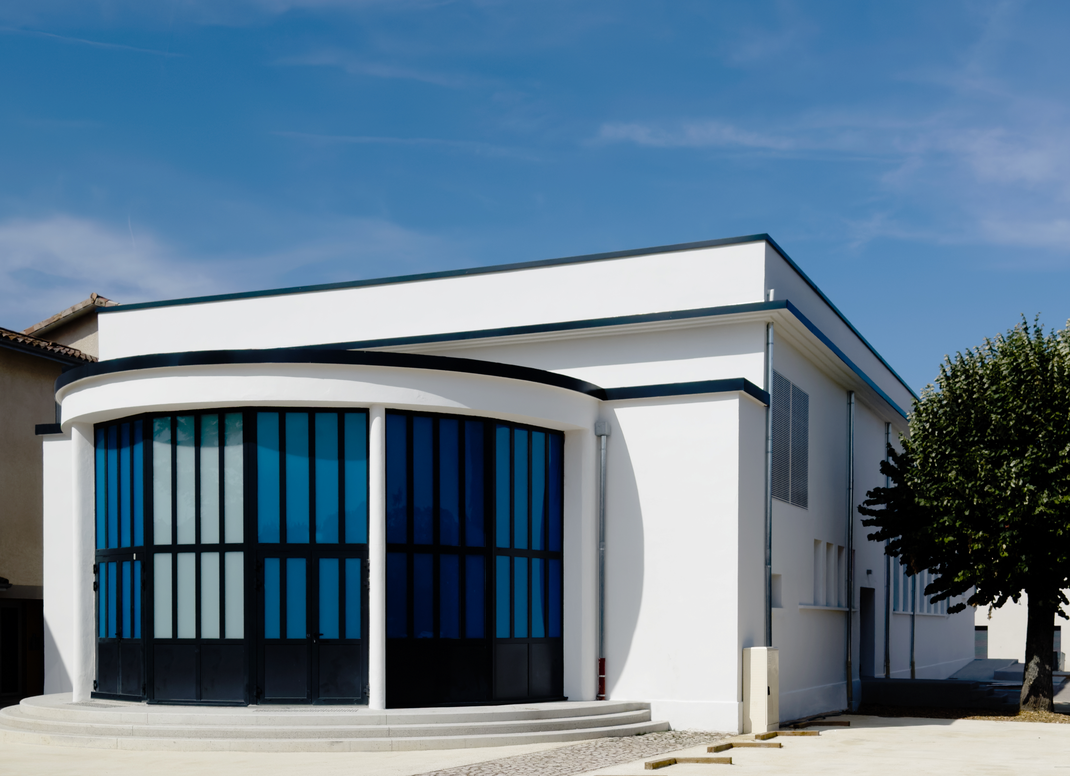 La Salle des Fêtes d’Anneyron naît d’un besoin exprimé dès 1934, lorsque la commune, dépourvue d’un lieu adapté aux réunions, spectacles et conférences, décide d’acquérir un terrain situé près de l’ancien couvent. Après une série de négociations foncières et d’aménagements, le projet prend forme sous l’impulsion du maire Paul Brottier. Conçue comme un véritable foyer d’éducation populaire, elle doit accueillir cinéma, théâtre, cours, conférences, bibliothèque, cantine scolaire et même des bains‑douches municipaux, très utilisés jusqu’aux années 1960. Sa construction, réalisée entre 1937 et 1939 sous la direction de l’architecte Meyzonnat, mobilise plusieurs entreprises régionales . La salle est opérationnelle dès juillet 1939 et devient un lieu central de la vie sociale, accueillant cinéma, bals et événements associatifs.